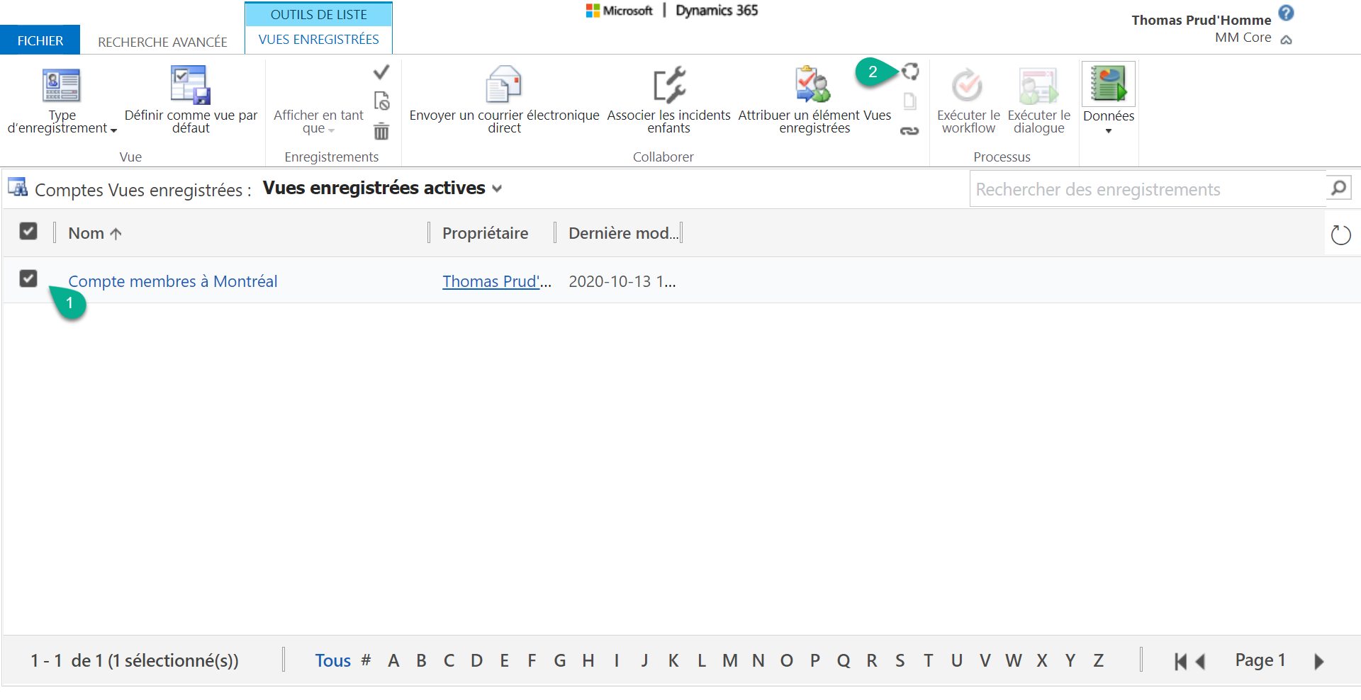 Once your search is saved, it is possible to share it. Start by going in your list of views for the desired entity.