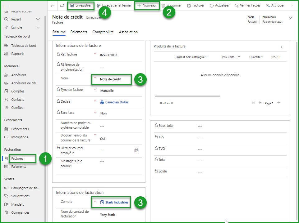 +Nouveaudans la barre d'outils pour créer une nouvelle facture (2)